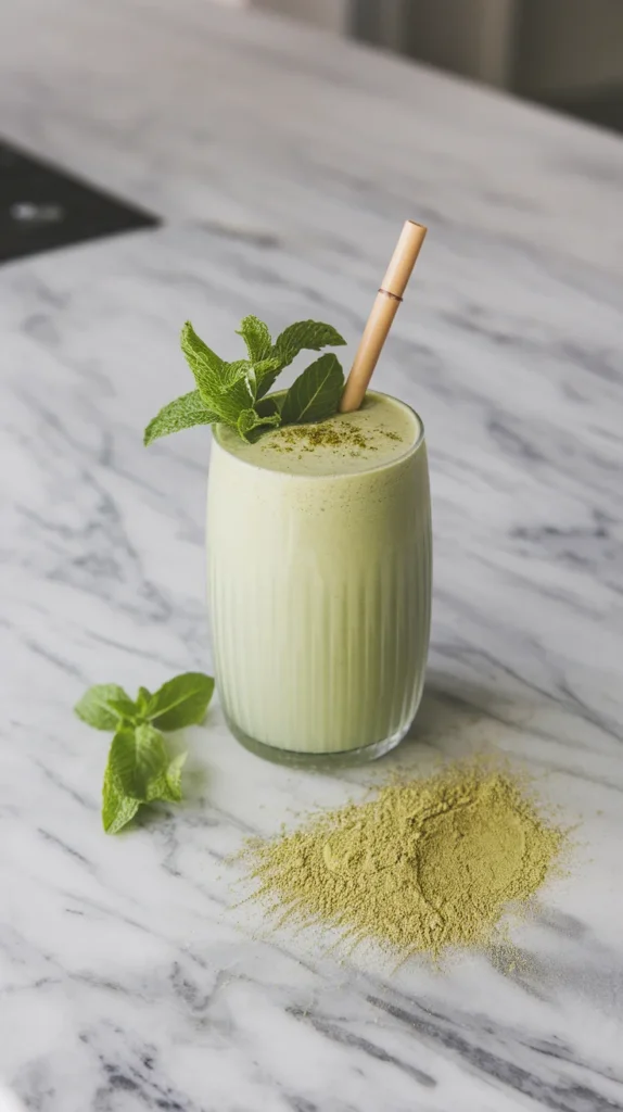 Matcha gives you a gentle caffeine boost without the jitters. The mint makes it refreshing—basically a green latte smoothie.