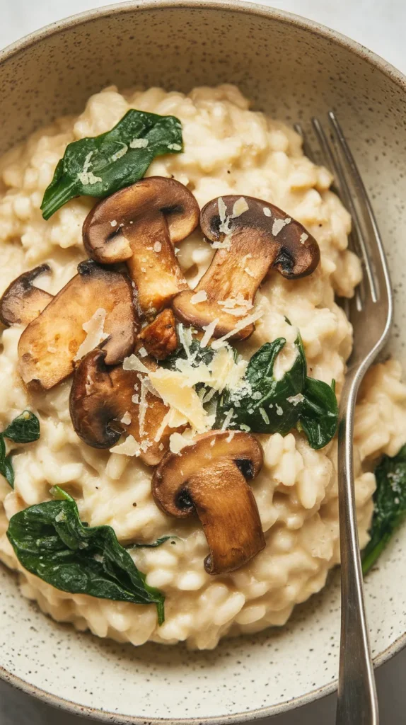 2. Creamy Mushroom & Spinach Risotto (Vegetarian Winner)