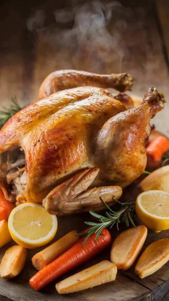 You get golden, crispy skin and tender meat that’s juicy (yes, even the white meat). The garlic + rosemary combo gives you that cozy holiday flavor without entering the danger zone of too much fuss. I once swapped rosemary for thyme—and the result was fine—but rosemary just feels Christmas. IMO.