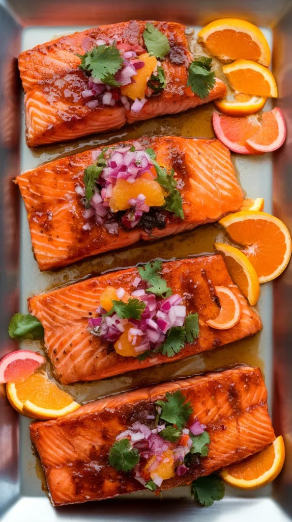 - While salmon cooks, mix orange, grapefruit, red onion, jalapeño, and cilantro in a bowl. Season with salt.