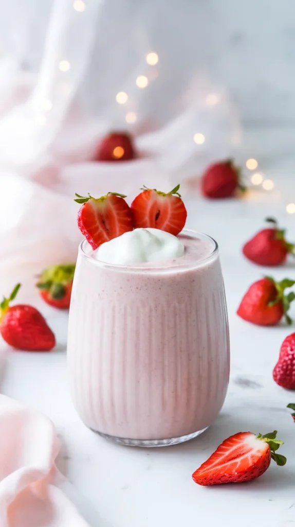 This smoothie is a refreshing pick-me-up that’s both light and protein-rich. Perfect for when you want something sweet but not too heavy. Think of it as a healthier version of a strawberry milkshake—your inner child approves. 🙂