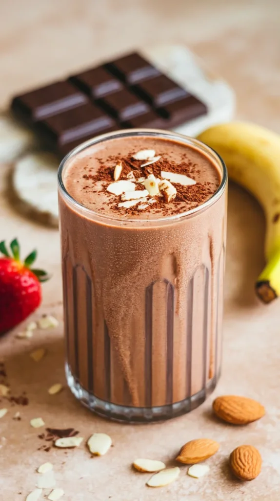 This shake tastes decadent but keeps your macros in check. The combo of almond butter and cocoa gives it that deep, nutty richness that makes you forget you’re “eating clean.” Perfect post-workout or mid-afternoon mood lifter.