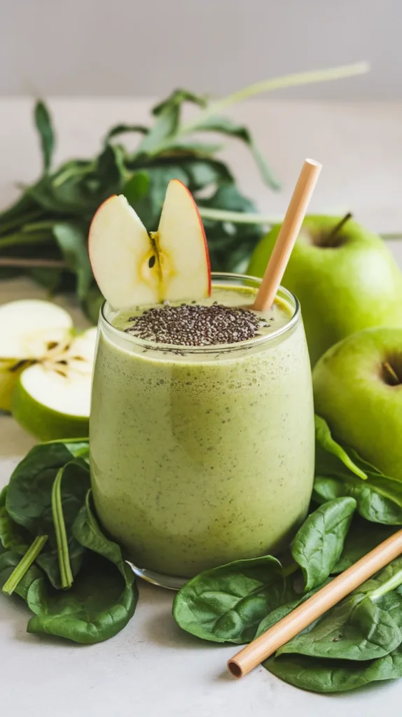 Yes, it’s green—but stay with me. This smoothie tastes way better than it looks. Think refreshing apple and banana with a hidden dose of greens that you can barely taste.
