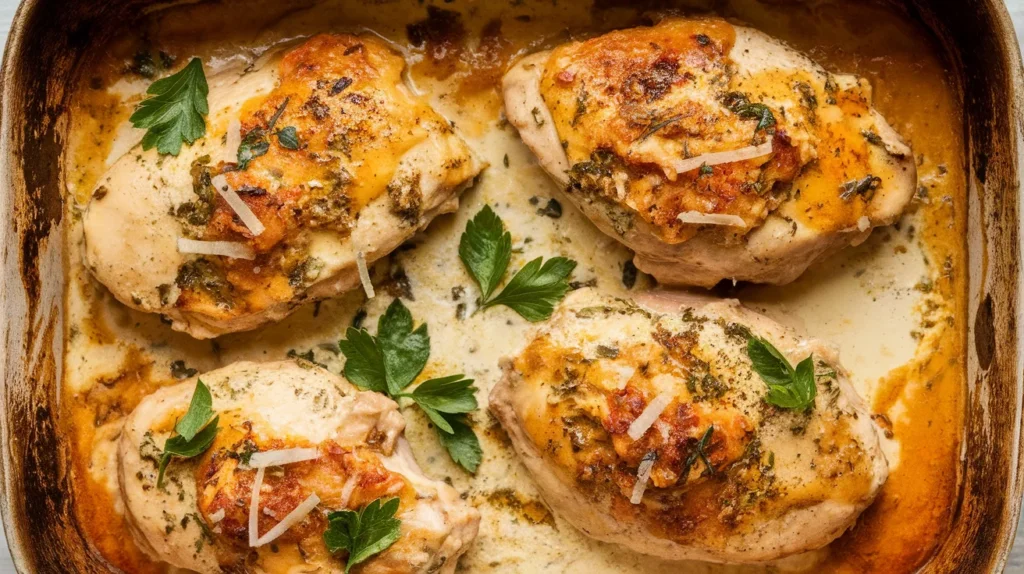 This Baked Chicken in a Smooth Cream Cheese Garlic Sauce is what happens when cozy meets lazy in the best possible way. It’s creamy without being fussy, flavorful without trying too hard, and honestly feels like a warm hug… but edible.
