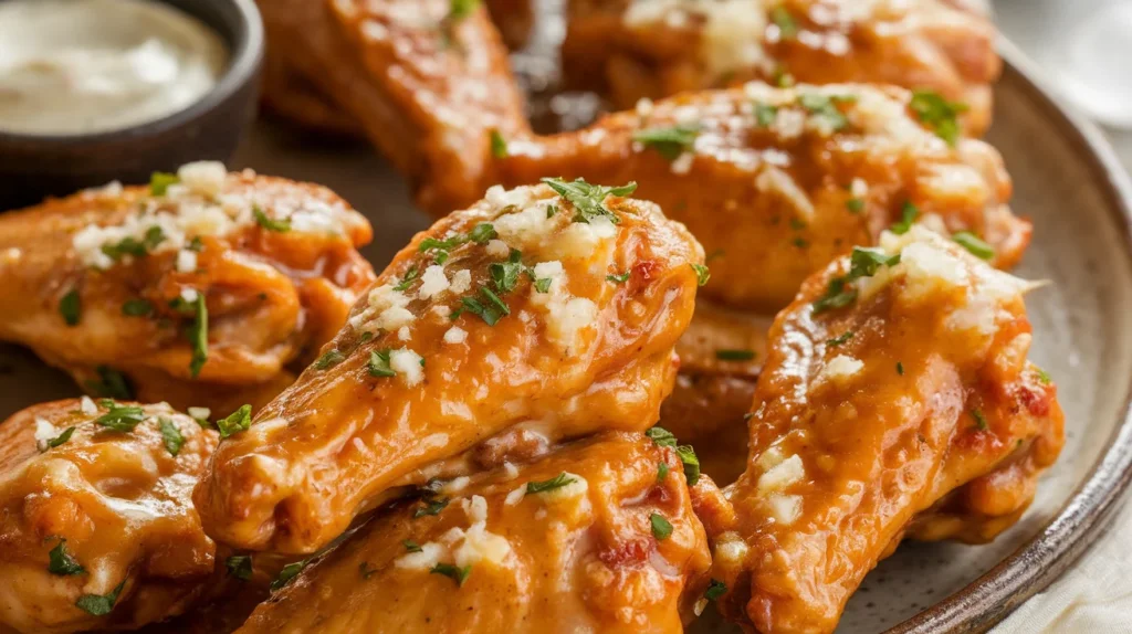 Baked Garlic Parmesan Chicken Wings with Extra Creamy Sauce