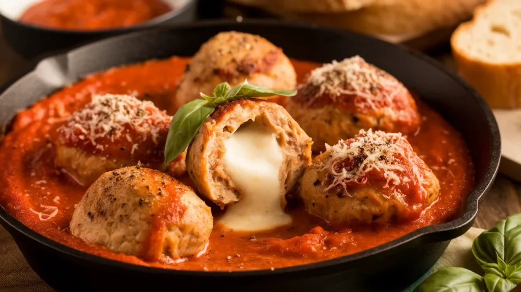 That’s where these Baked Mozzarella Stuffed Chicken Meatballs in Tomato Cream Sauce come in. They look fancy, taste ridiculous, and secretly require very normal human effort.