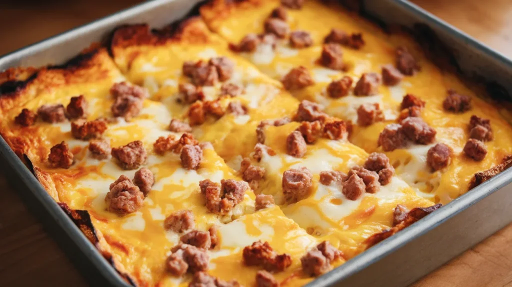 Basically, this casserole is what happens when eggs, sausage, and cheese decide to team up and make your morning way easier. And honestly? We love a reliable group project.