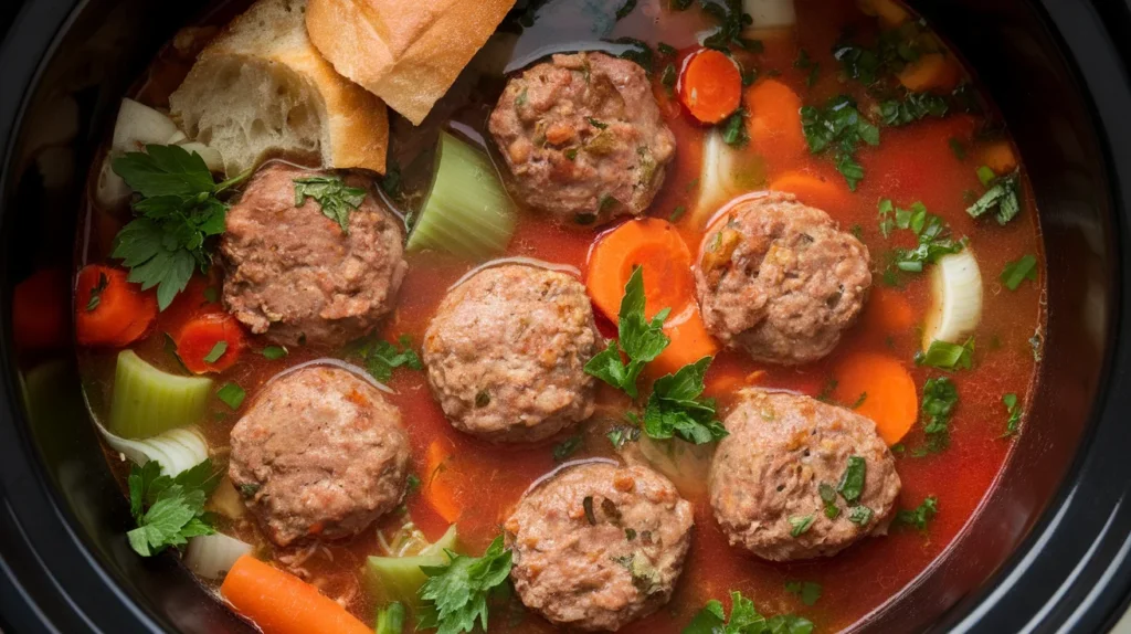 Cozy Slow Cooker Meatball Soup with Vegetables