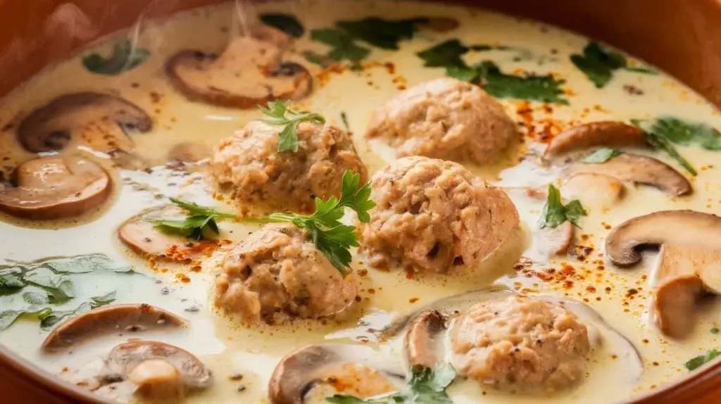 Creamy Swedish-Style Meatball Soup with Mushrooms