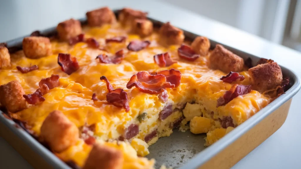 Creamy Tater Tot Breakfast Casserole with Bacon and Eggs