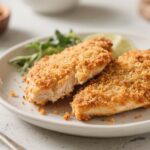 - Bake: Bake at 425°F for 14–18 minutes, depending on thickness, until the coating is golden and the internal temperature reaches 165°F (74°C). For deeper color, broil on high for 1–2 minutes at the end, watching closely.