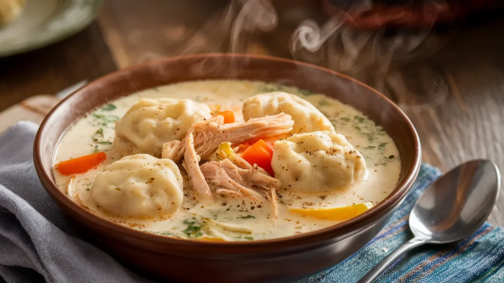 Crockpot Chicken Dumpling Soup with a Rich Creamy Base