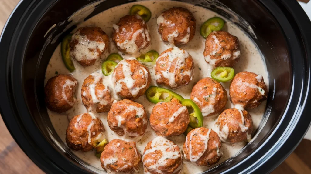 Crockpot Southern-Style Meatballs with Ranch and Pepperoncini