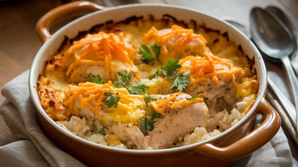 This Homestyle Creamy Chicken and Rice Bake (No-Fuss Dinner) is comfort food at its finest. It’s warm, filling, and ridiculously easy—exactly what dinner should be after a long day.