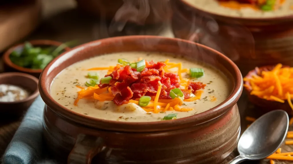 This chowder is thick, cozy, loaded with tender potatoes, and topped with crispy bacon that honestly deserves its own fan club.