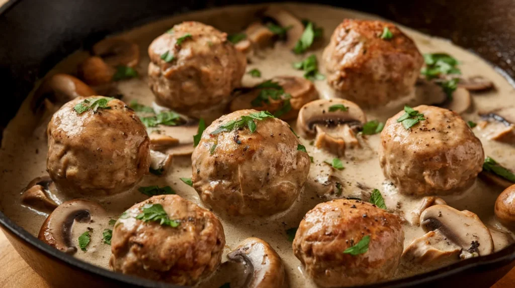 Homestyle Meatballs with Mushroom Cream Sauce