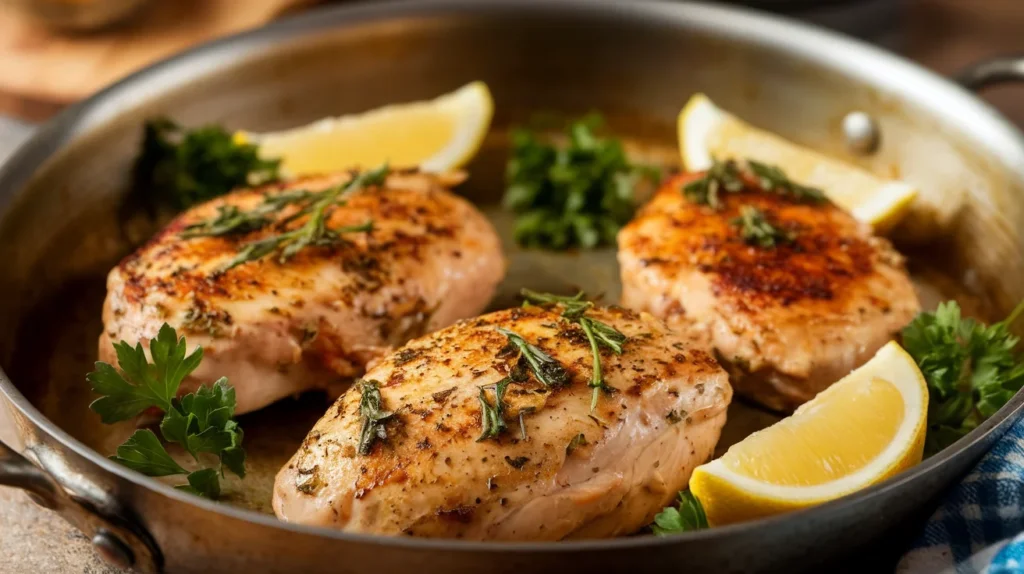 Cook for another 5–7 minutes until chicken is cooked through and juicy. - Finish with lemon juice and fresh herbs.