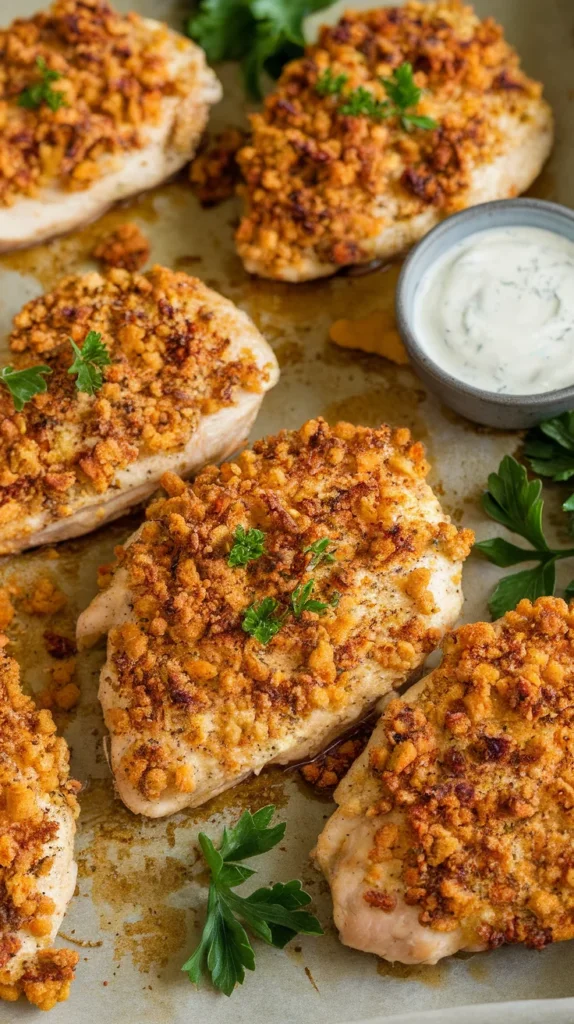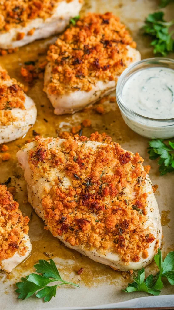 There you have it—Oven-Baked Ranch Chicken with a Crunchy Parmesan Crust that makes you look fancy with zero stress. Now go impress someone—or yourself—with your new culinary skills. Trust me, the crunch alone deserves a slow clap. You’ve earned it!