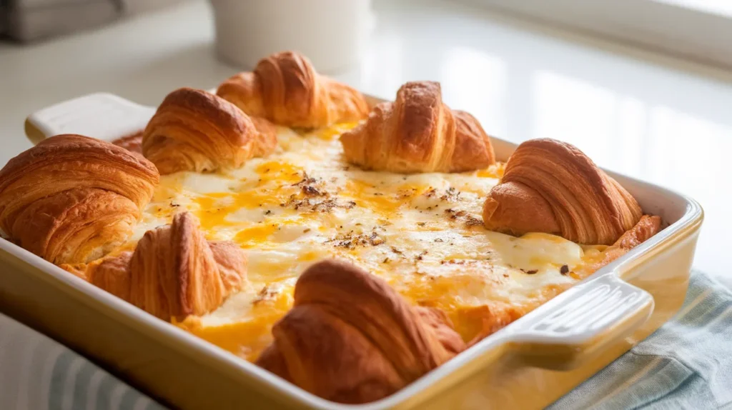 This casserole packs solid protein from eggs and cheese, which helps keep you full longer (translation: fewer snack attacks). Thanks to croissants, it’s definitely indulgent—but hey, balance is a thing. Pair it with fruit or a light salad and suddenly you’re very responsible. Personally, I call this emotional nourishment and move on.