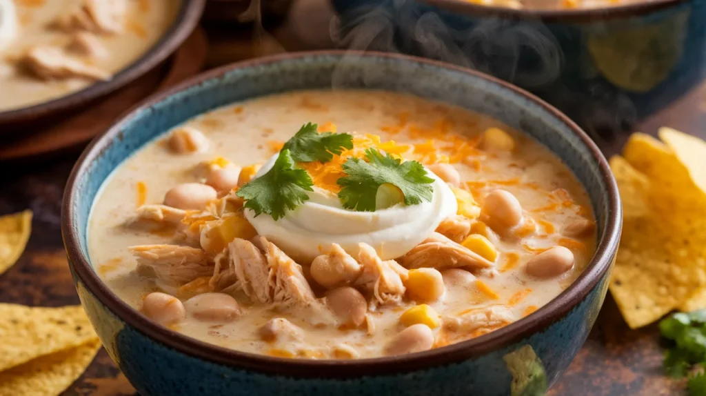 This chili packs a solid protein punch from the chicken and beans, helping keep you full and satisfied. Corn adds natural sweetness and fiber, while the creamy base makes it feel indulgent without being over-the-top. It’s hearty enough for dinner but balanced enough that you won’t feel like you need a nap afterward. IMO, this is comfort food done smart—rich, filling, and totally worth it.