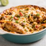 This casserole blends familiar flavors with just enough kick to keep things interesting. It’s flexible too—use rotisserie chicken, leftover rice, or even quinoa to make it your own.