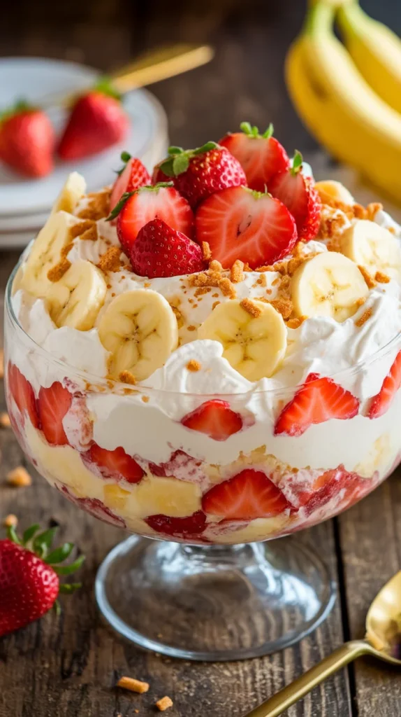This salad isn’t exactly kale-level healthy, but it does give you some vitamin C from the strawberries and potassium from the bananas. It’s a dessert that feels lighter than cake but still totally satisfies the sweet tooth. Personally, I like to think of it as a sneaky way to eat fruit while pretending I’m having cheesecake.