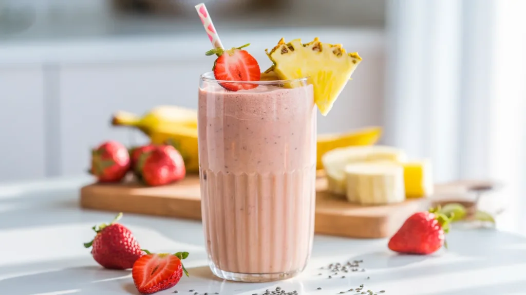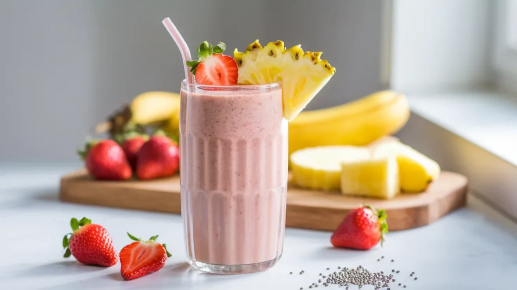 This Strawberry Banana Pineapple Protein Smoothie is the kind of recipe that makes you feel productive without actually doing much. It’s quick, nutritious, and tastes like sunshine in a glass. Whether you’re fueling a workout or just trying to survive a Monday, this smoothie shows up for you.