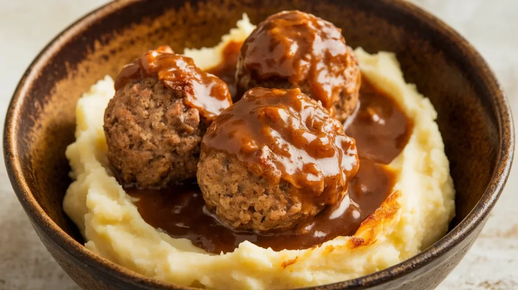 Second, the flavor payoff is unreal. The onions melt into the gravy, the meatballs turn ridiculously tender, and everything tastes like it came from a comfort-food diner that knows your name.