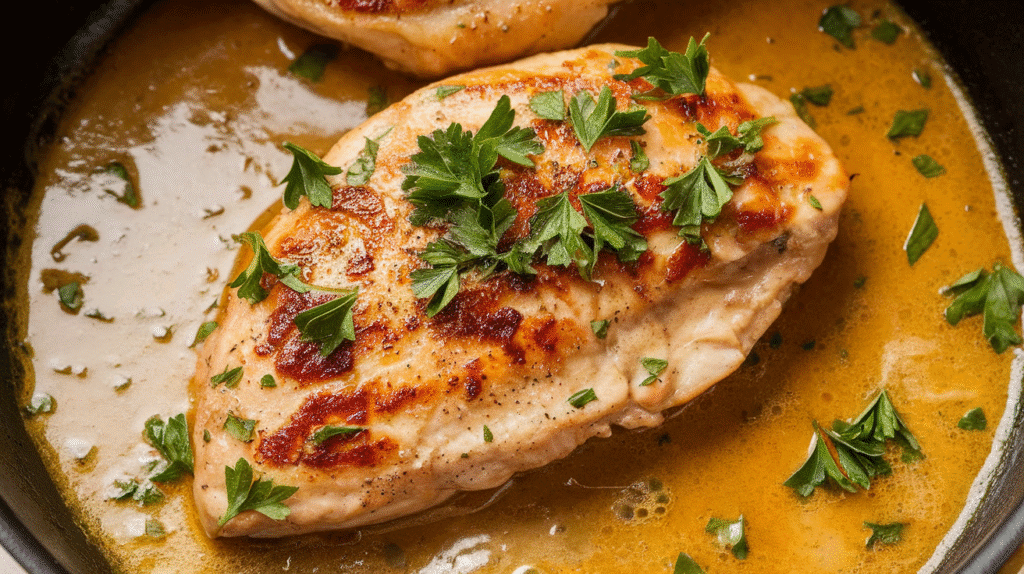- Return the chicken. Nestle those golden beauties back into the skillet, spoon sauce over the top, and let them finish cooking for about 10 minutes on medium-low.
