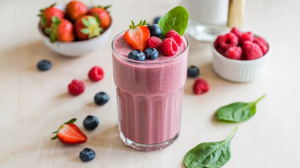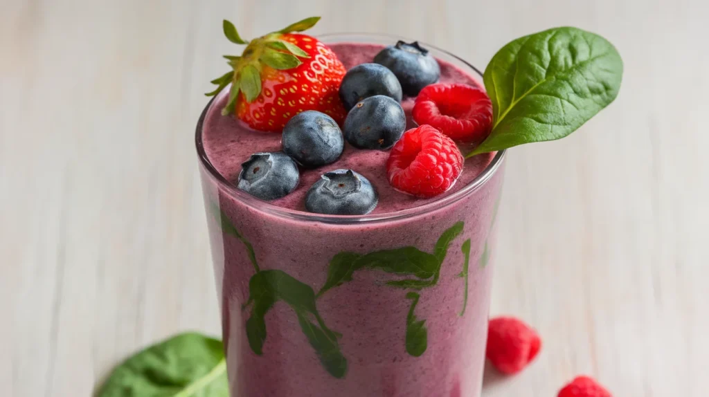 This smoothie packs serious nutritional value. The berries provide antioxidants that help support your immune system, while spinach adds iron, vitamin A, and extra fiber. Banana contributes potassium for muscle health and natural sweetness. Personally, I love how the spinach boosts nutrition without messing with the flavor—healthy food that doesn’t taste like “healthy food” is always a win.